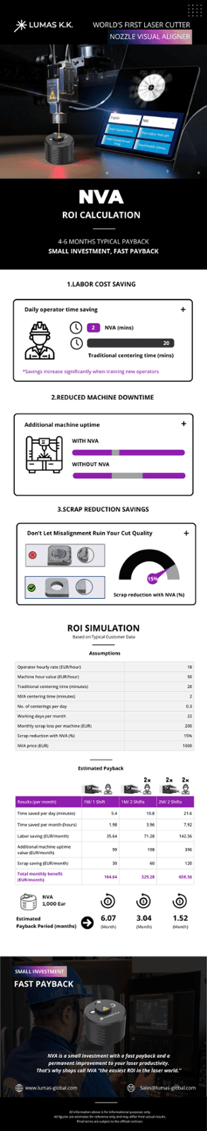 NVA is a simple, one-time upgrade that permanently improves alignment accuracy, uptime, and cut consistency. For shops seeking a low-risk, high-impact improvement to their laser cutting workflow, NVA delivers one of the fastest and most reliable ROIs in the industry.